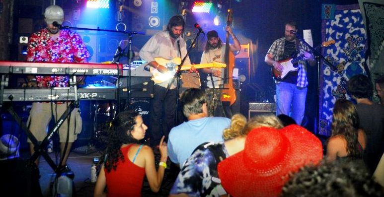 Last night as I entered the Ace Bar for Shoe Groove, I was greeted by Old Shoe’s manager Mike Kaiz. He saw that I was burdened with my arms full of stuff and gestured to the back booth. Reflecting back upon this, not only was this show a great summer skin showing show, but also an entire club where everyone could set their stuff together. There was a spirit of shared camaraderie and a sense of home. Everyone looked familiar, even if I had never met them. The dance floor raged out with two stages of music and spilled into the entryway full of conversations.Catfish and the Dogstars were working their magical mystical vibes of cultured grooves when I first arrived. I had been meaning to check these guys out for awhile and I see now what I was missing out on. That part of the family took off into the night for the next session of a late night slot at the Brown Town festival in Michigan City, IN. The lights went down as they hurried away and the lights came up on a simple stage in the back of the club. Ed Anderson strong and significant with a single spotlight started off his first set of the night with Day Tripper by the Beatles.Ed seemed very comfortable and quite aware of his surroundings. His singing on a platform box stage was not over exaggerated, slapping his feet and wildly begging for attention. His presence does command attention in a Johnny Cash sort of way. That dark stranger in the ball cap sure can spill his heart out in some tunes. I look forward to seeing another stage presentation with Ed and perhaps a more polished production with his band at command in full steam.Afternoon Moon and the moon units were in full force. The flowing set was filled with the hair of a pair of brothers and great energy in between. They launched into Radiohead’s closer from the Bonnaroo set, Paranoid Android and didn’t finish. They skipped seamlessly into their own original material and I was quite impressed. I like a band that can tell you their influences without droning on about themselves in their bio line. As a matter of fact, Afternoon’s bio is amusing and quite witty. “Like an army tank pulled by a group of centaurs down a mountain”I approve!The final culmination of the melting pot of an evening was Family Groove Company members Jordan Wilkow, Mattias Blanck, and Janis Wallin on stage mixing and matching with all members of Old Shoe except unfortunately for the absence of Chris Morrow. The absolute highlight of my evening was Joe Day’s outrageously enormously talented falsetto on his version of Beck’s Debra. Always a hoot to hear that song, Joe Day donned the blazer, got out from behind the keys, and dazzled the party. He was on his knees with notes that defy key. I was laughing and singing and I’m pretty sure I squeezed out a tear with its sheer beauty as confetti cascaded around us all.