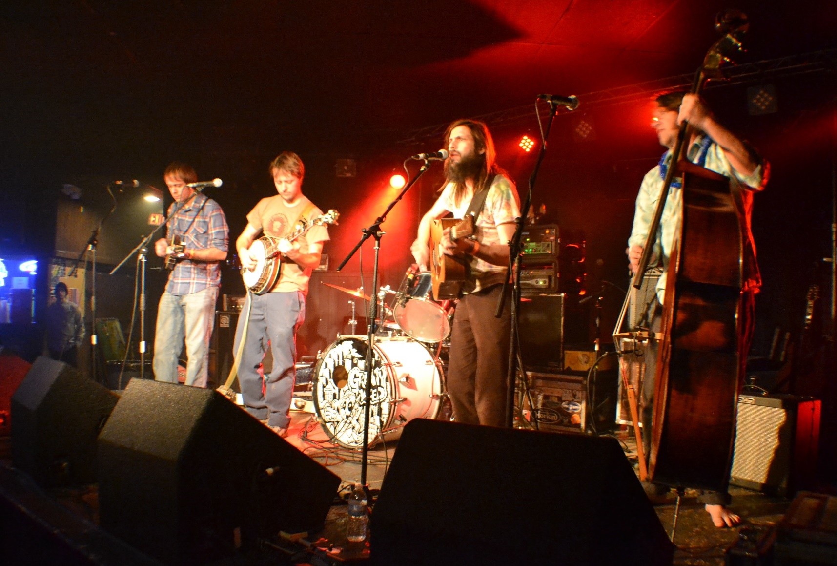 The (75% barefoot) Sunflower Colonels of Lawrence opened the show with some pristine bluegrass pickin’ and stompin’. The Colonels really know how to draw the crowd to the dance floor and did so with the first notes of their opening tune. The Colonels’ superb talent allows them to flow freely from traditional bluegrass tunes to old gospel songs and still touch on everything between. A four piece band, the Colonels include a mandolin, banjo, guitar, and an upright bass. Soon after they took the stage, people started pouring out onto the floor ready to serve the last night of 2013 some well-deserved justice. It was my first time to see this band and I am definitely looking forward to seeing them on future lineups after their stellar performance that night. (Excellent performance guys!)