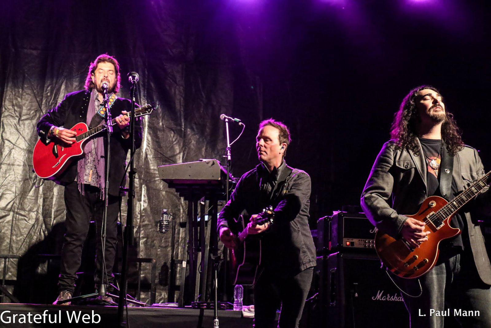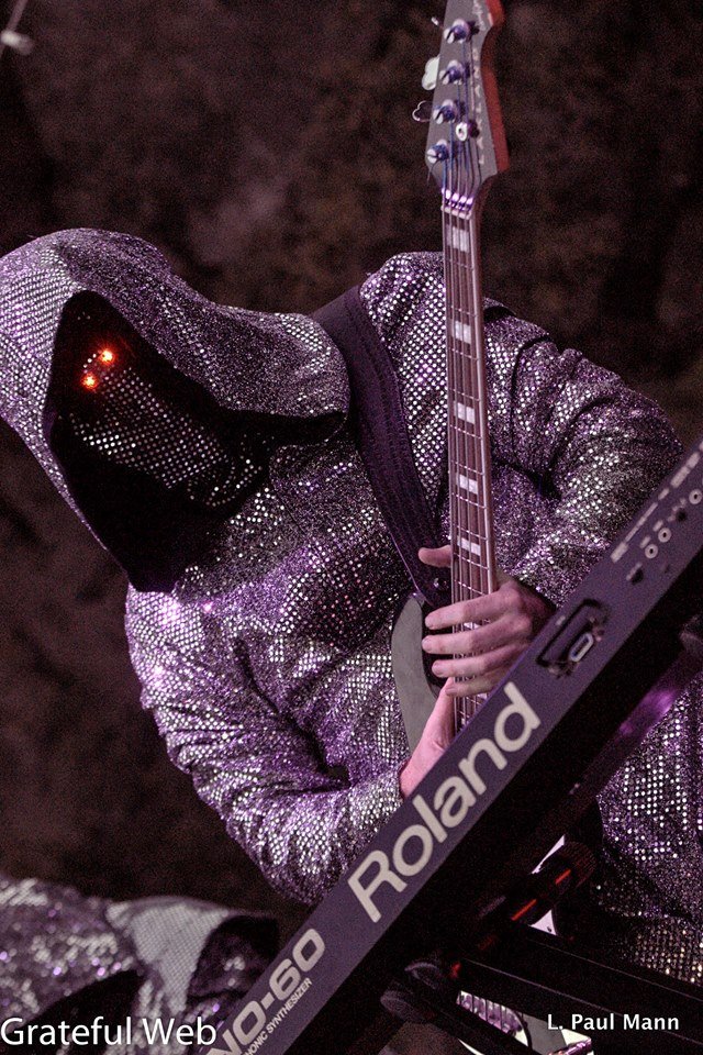 The perfect band for the twilight hour followed next with a set by the otherworldly San Francisco quintet the Lumerians. The band appeared in sequenced robes with large hoods covering their faces. Red LED lights served as eyes protruding from their masks. The group began with a synthesizer-laden set of classic Space Rock. The two lead synth players then switched up to bass and guitar respectively offering up a more rock based sound. Despite the Devo esque sci-fi look of the band, the music they generated was filled with top-notch jam band rhythms.