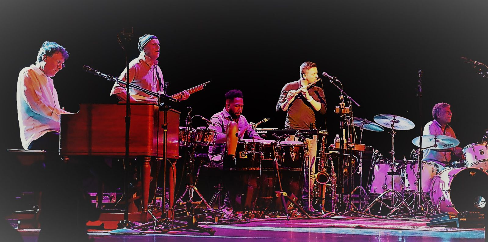 A sold-out crowd of silver-haired rock fans many in tie-dyed t-shirts came to hear their favorite songs from Winwood’s storied career, including hits from Traffic and Blind Faith. Winwood opened the set playing the organ alongside his five-piece band of veteran jazz-rock oriented musicians, with the Spencer Davis Group hit I’m A Man. The jazzy jam set the tone for the evening of mostly extended jam versions of some of Winwood’s biggest hit songs. Winwood and the band followed up with the smooth jazz sounds of Fly, and At Times We Do Forget from his 2009 “Nine Lives” studio album. The band then returned to the classics with an extraordinary rendition of Pearly Queen, from the second “Traffic” album. Band member Paul Booth played an inspiring flute solo followed by a mesmerizing organ solo by Winwood. The group played Buddy Miles classic rock and soul fusion song, Them Changes. Band guitarist Jose Pires de Almeida Neto played the classic funky rhythms of the song perfectly.