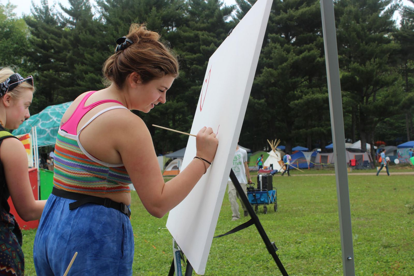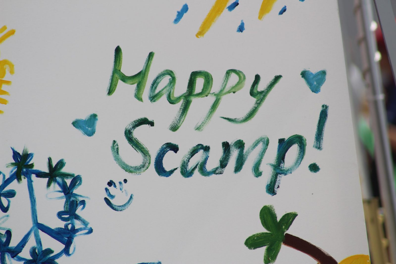 This information about Here/Hear is pertinent because of what we did to set up our booth. Our booth included both a chalkboard where people could write encouraging and positive statements, as well as some painting canvases where people could paint/draw what they were feeling and what they wanted to express. This was in addition to information about our organization and the work that we do. We really tried to engage the arts at Summer Camp and give people a safe space to express themselves and what they were feeling.