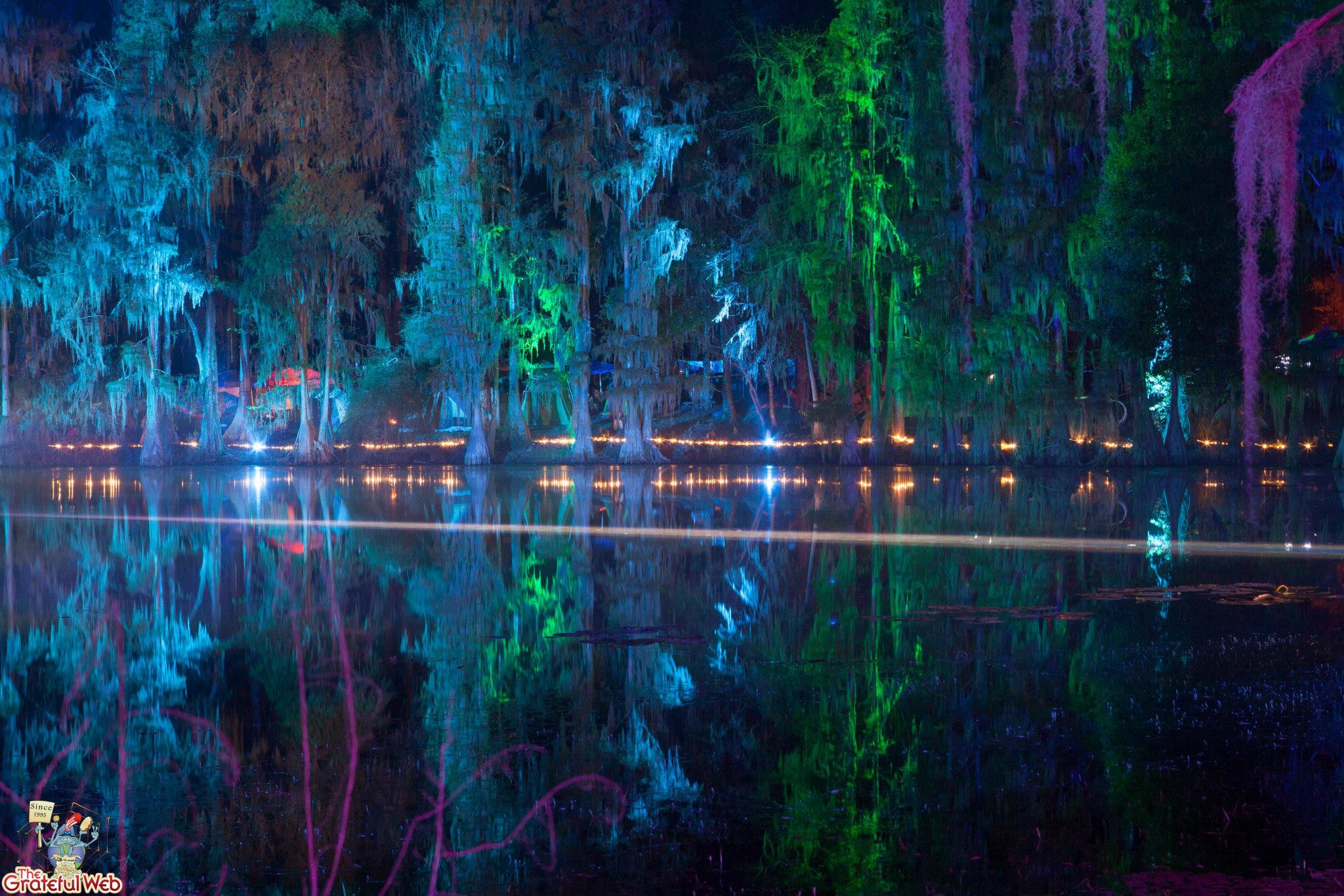 Of the varied 7,500 fans and their different tastes, all of the ones I spoke with loved Hulaween and loved SOSMP. Those frequent festival goers that had not been there before said that though they’ve enjoyed festivals in other beautiful settings, the shade, trees, space, river, and the lay of the land trumps all others. People came from all over. We spoke with people from Chicago, Montana, Colorado, California, New York, Virginia, Georgia and of course Florida. While speaking with Drew Emmit briefly while warming up at the Spirit Lake’s massive steel bull fire pit he told me he felt the SOSMP was “magical”. This means something coming from a musician who has played many amazing venues and lives in the Colorado mountains, one of the most scenic places in the country. Spirit Lake, a visual arts extravaganza set in the forest on the lake was a hit. Though a lot of people had just been to Tomorrow World which is heavy on production, they were still turned on by the lights and arts created at Spirit Lake, so much closer to nature.