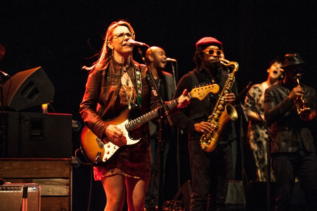 Doyle Bramhall II returned to the stage looking like a cross between a spaghetti western Clint Eastwood and a mescaline-fueled member of Carlos Santana’s band at Woodstock. Kofi Burbridge ushered in another original, “All That I Need,” with a flute solo before continuing to work the keys. The horn section featuring Kebbi, Maurice Brown on trumpet and Saunders Sermons on trombone rolled along a sixties’ soul bridge to the sky like a sunny side up-sounding Derek and the Dominos tune. “Derek said we’re going to go as long as they let us,” Susan said after the song. “We’re just going to keep going until we get tackled, or until my fingers fall off…I can’t feel my fingers, is that bad?”