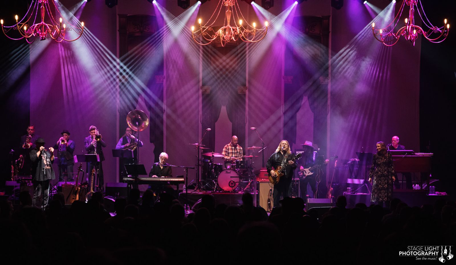 The latest iteration is Warren Haynes‘ The Last Waltz 40 Tour, which grew out of what was originally a one-off celebration at the New Orleans Jazz Fest last spring. Haynes decided to take the show back out on the road this month for a dozen or so dates along the East Coast. At Boston’s Orpheum Theatre, the veteran guitarist was joined by some top-notch sidemen (and -women), including Joan Osborne and Ivan Neville on vocals, Don Was on bass, Michael McDonald and John Medeski on piano and keys, Bob Margolin on guitar, Mark Mullins on trombone, and Terence Higgins on drums, along with the original horn arrangements of Allen Toussaint.