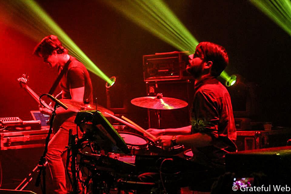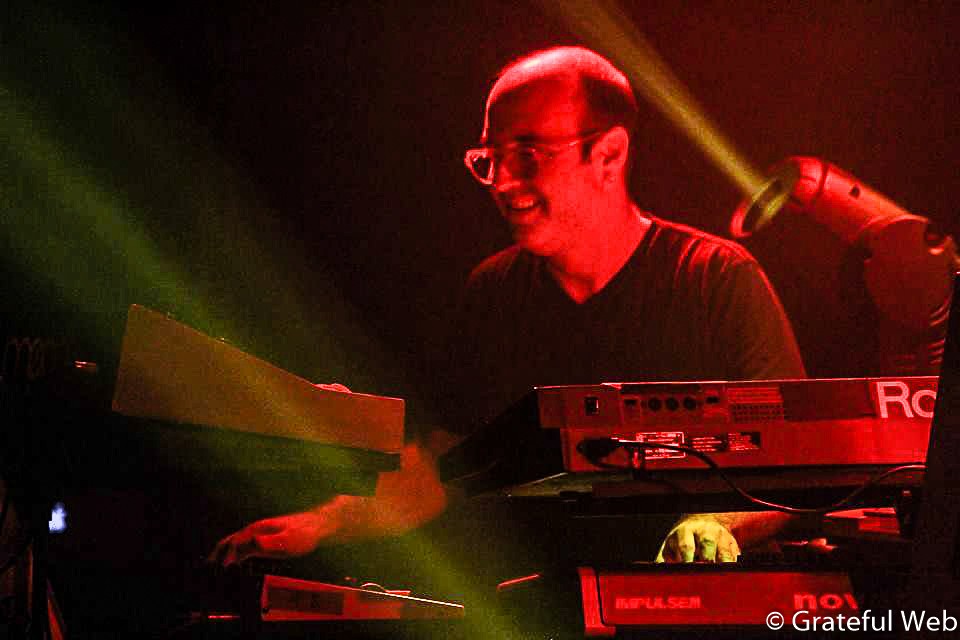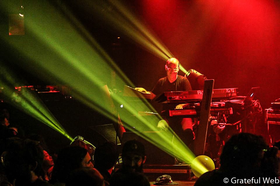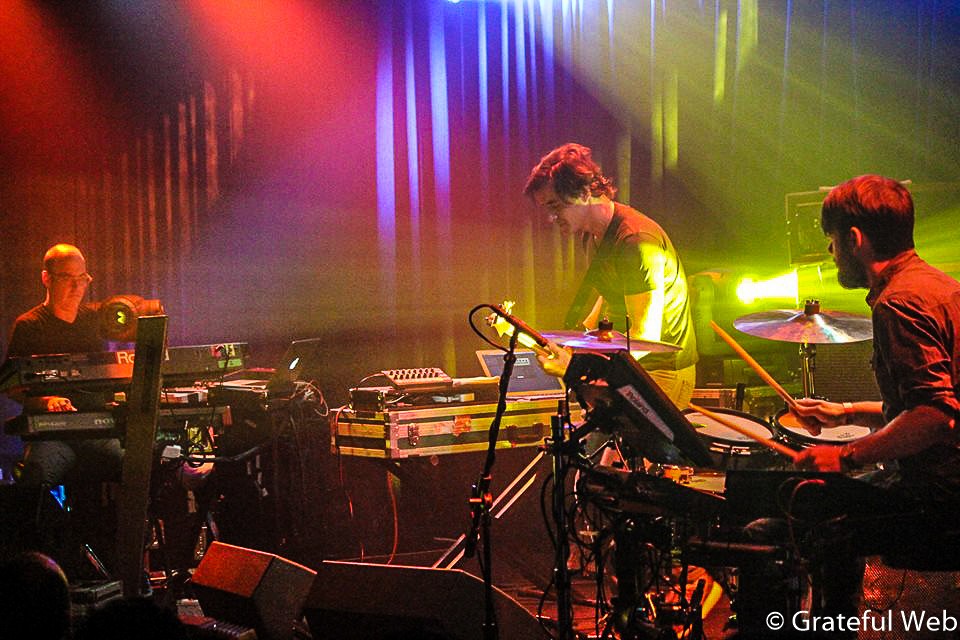 Grateful Web dropped in on the second of two nights and it was clear that the band and crowd were already high on each other. The trio jammed a supremely sublime two sets of livetronica. Kurtz stood between Stouffer and Shields, exchanging natural cues and glancing in glee back and forth. Their chemistry and ease in the new configuration was immediately apparent. The impressive lighting rig provided maximum visual stimuli with endless patterns and color schemes that aided the mood of the music.