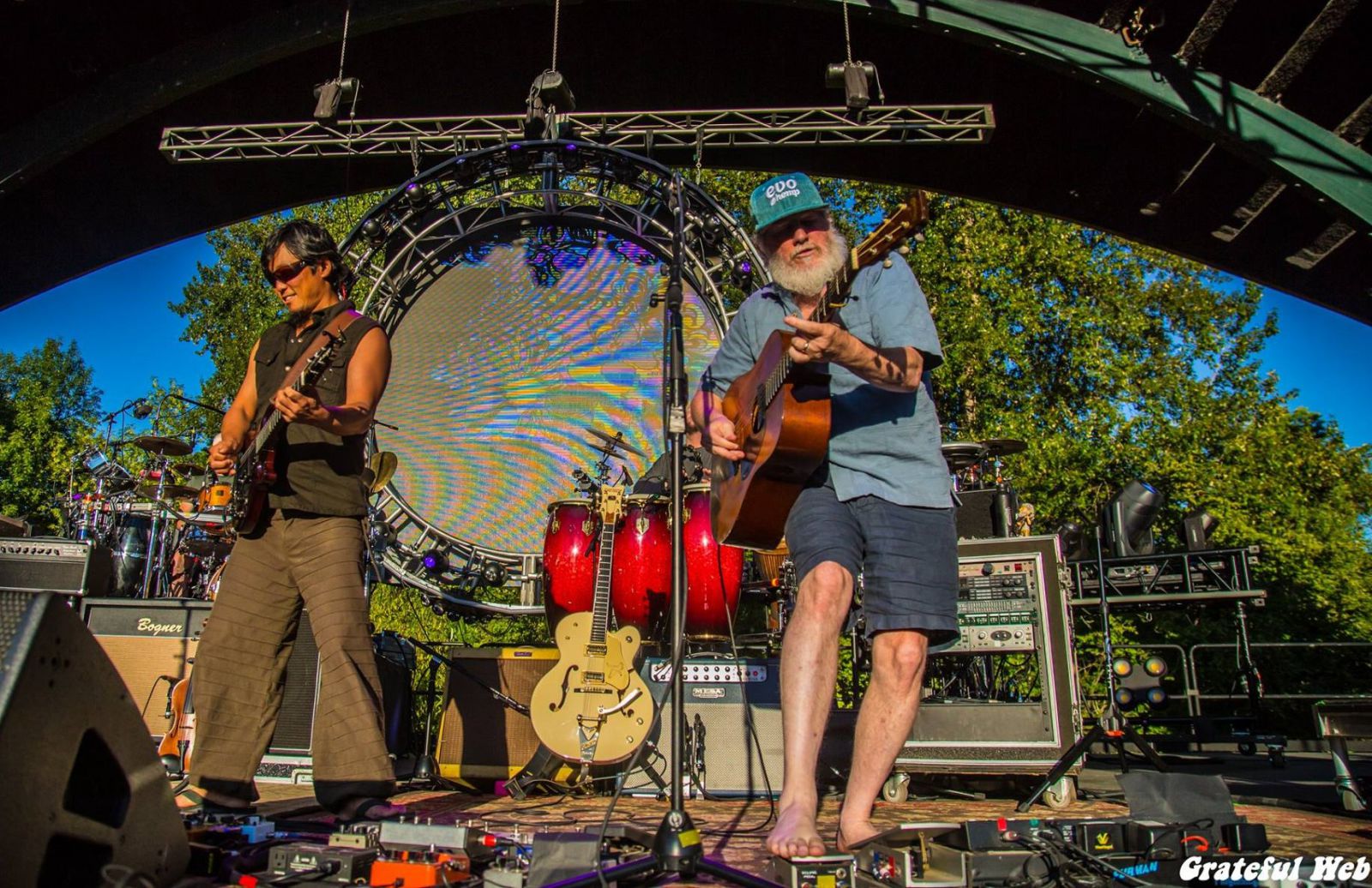 The intimate riverside amphitheater sparkled in late afternoon sunlight as the band appeared on a stage adorned with freshly cut flowers. The Colorado-based outfit looked quite comfortable with the Cuthbert’s idyllic, natural setting as a backdrop of tall trees lazily swayed in the breeze behind them. Michael Kang casually announced, “This feels like home.”