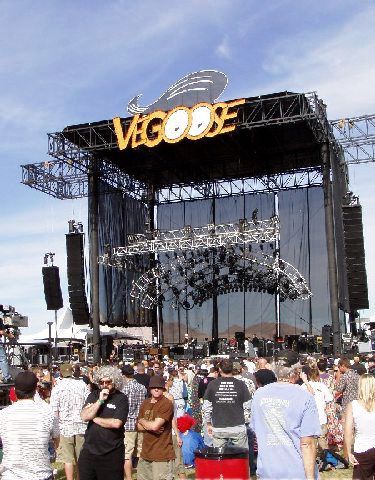 To the festival grounds around 2:30 after a dip in the pool. Pretty simple, a practice field with two stages and a couple of circus tents next to the stadium. Food lines are ridiculous, but there’s good organic food available even if the line is long. Checked out the club tent for some hip hop for a minute but can’t even get inside. All of the Bonnarooesque sound bleed problems. I’ve got an Idea, try not pointing the stages @ each other. More Mule for the hardest working man in show biz. Come to find out Warren left the show the night before and played w/ Umphrey’s McGee till 5AM. Mule crushes with a long set – No Quarter! Hot stuff