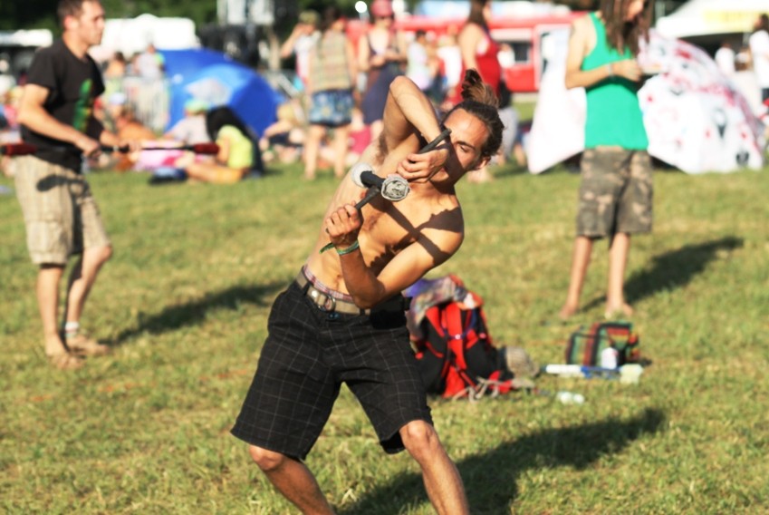 Thursday at Wakarusa started in the afternoon for me. After the Great Campsite Shuffle of 2012, I headed out to see one of my favorite electronic artists, Phutureprimitive. He has great technique and puts on a generally fun show! Plus, there was a sexy fire dancer lady performing on stage with him – this is always a big plus in my book.