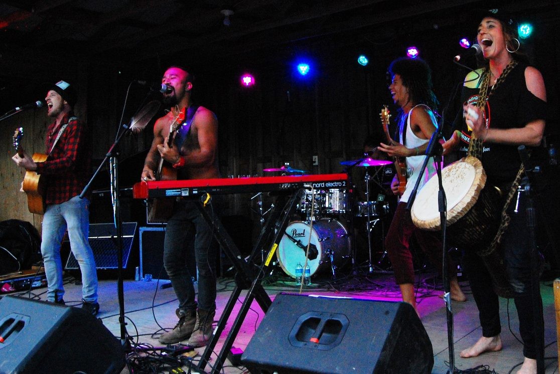 Then I went to a press conference with representatives from Dirtfoot, Quixotic and Rebelution. It was very interesting hearing what they had to say about different aspects of the festival. They talked about collaboration that happens between bands at festivals – a very special opportunity. The Dumptruck Butterlips show also featured members of Dirtfoot and Quixotic. Rebelution is okay with Snoop Lion doing reggae, but we’ll get to that later. And Marley Williams of Rebelution says you should check out The Green and Hot Rain. There, they discussed this year’s festival in particular. The weather makes people hungry for music and dancing, and when we’re trapped in our tents more times than not, any opportunity to see music and get out brings an extraordinary amount of energy to each show.When I went to my next show, Nahko and Medicine for the People, I was full of expectation and just plain happiness. I haven’t looked forward to many shows in the way I did Nahko. What I’d heard was true: Nahko and Medicine for the People felt like a church service (but awesome and fun). It’s uplifting, honest, good and beautiful. The looks on people’s faces were peaceful and loving, and so many friends danced among the trees with each other. Not only was the experience wonderful, but the band is also very talented. The show isn’t like a jam band’s – where individual styles shine, but instead it felt to me like a collective talent coming together to create a single sound idea. Regardless of the technicalities though, Nahko and Medicine for the people was one of my favorites this year.
