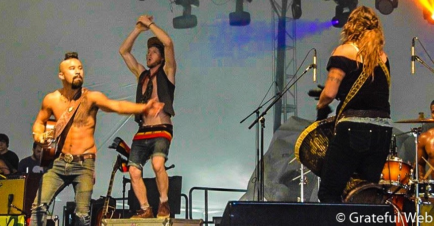 Next, I wandered around taking photos of people and enjoying the beautiful clouds on my way to Nahko and Medicine for the People. When I got to their show in the Revival Tent I was impressed, and so was the band, by the amount of people there. Considering their smaller crowds and sets at last year’s festival the difference was probably 10-fold. Since I saw them last year the band’s sound has changed, while their message has stayed the same. They added a drummer, so there is twice as much percussion onstage now. It’s fantastic, large, whole and full. The music tugs at your motivation and their lyrics drive you to consider your life. Or at least, they do for me and I believe for most of their fanbase. Before I traveled to another Nahko Bear announced how thrilled he was to see Wookiefoot on the lineup – he was raised by their music. The band also played Michael Franti’s “Stand Up” (he is also on the lineup), as well as a favorite of the audience: No Scrubs by TLC.