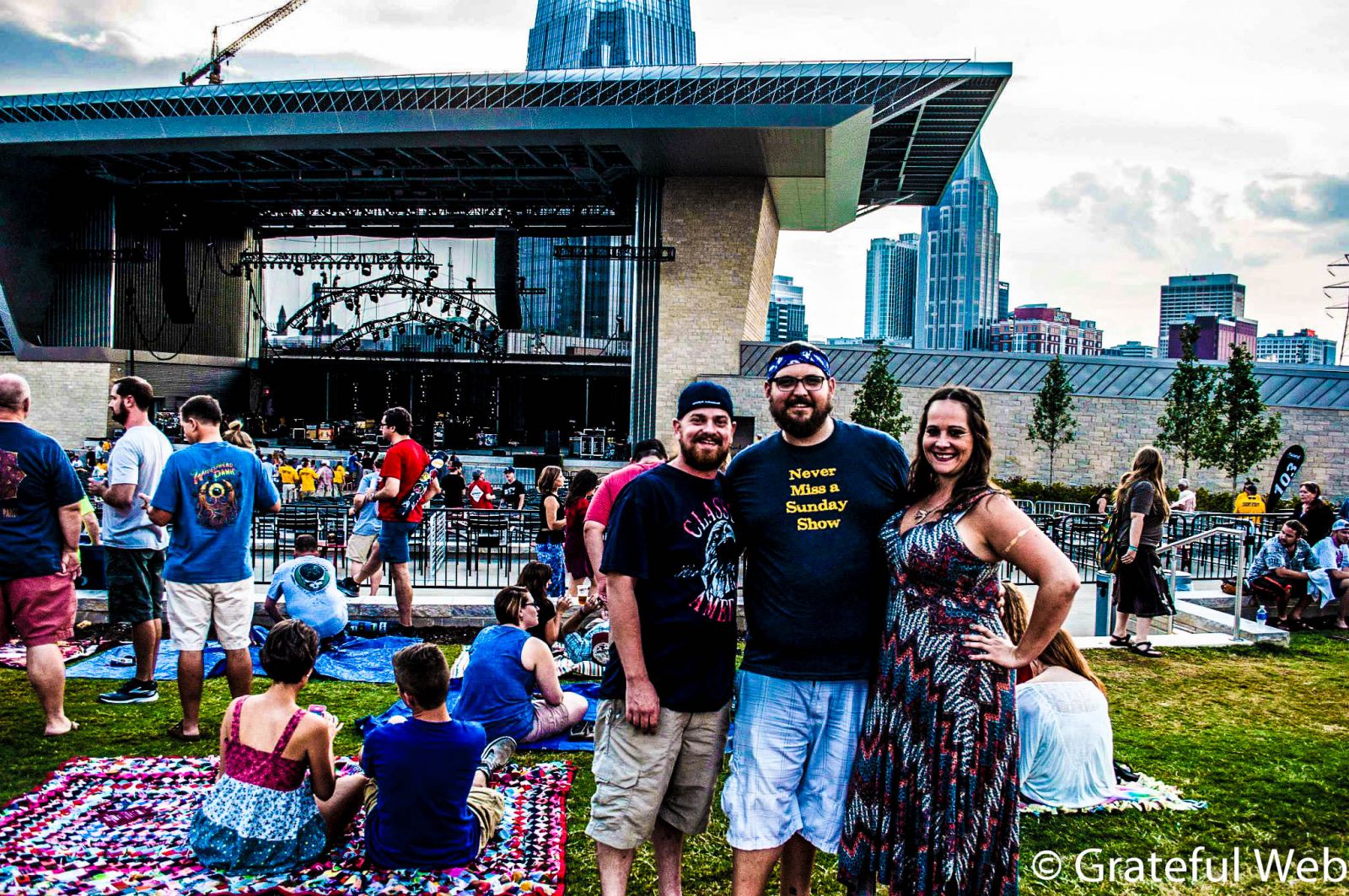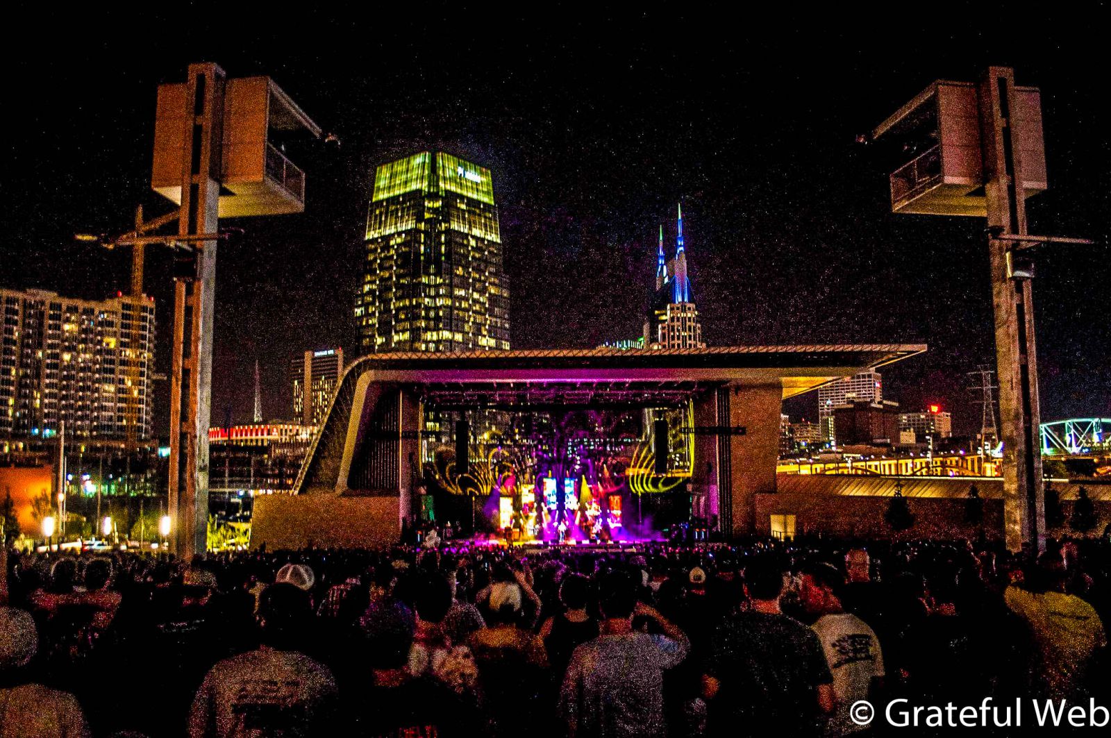 Ascend Amphitheater is one of the most unique venues I’ve had the pleasure of experiencing in a long time. It is nestled right in the middle of downtown Nashville. There are high rise buildings behind them, a small, but ample stage which adds a beautiful view to the already amazing light show. The stage sits at the bottom of a grassy knoll which slowly inclines from a pit area to a seated pavilion area, and finally into a large lawn where groups of friends gathered. As I stood at the front of this amazing venue and looked toward the crowd, I could see a bridge that went across the river. Ascend Amphitheater is definitely something special, and I suggest seeing a show there. There’s nothing like being in the middle of a huge city knowing that everyone around is listening to one of your favorite bands.