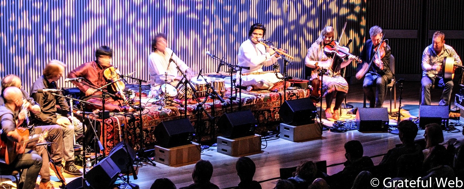 Last weekend Hussain ended an impressively diverse stint as artist in residence at the San Francisco Jazz Center. Everything from clinic style sit-ins, workshops and varied headliner collaborations sold out almost instantly. Grateful Web was lucky enough to get invited to Hussain’s bold Celtic Connections project last Thursday in the Hayes Valley Neighborhood of downtown San Francisco. Situated between the theatre district and the seedy Civic Center Square, SF Jazz brings the finest of artists from around the world to Northern California. It’s clear why Hussain brought Celtic Connections for its United States debut to the intimate acoustics of Miner Auditorium. He began the evening by briefing us on his contemporary fascination with Celtic music that he began exploring in 2011. The results were inspired and explosive. Now he has assembled an impressive array of players to fuse an entirely new breed of musical possibilities.